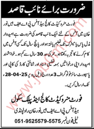 The job is for the position of Naib Qasid. This job is to help with small tasks in the office and school. You may carry files, keep the place clean, and help teachers or staff when needed. This job is important for the school to run well.
